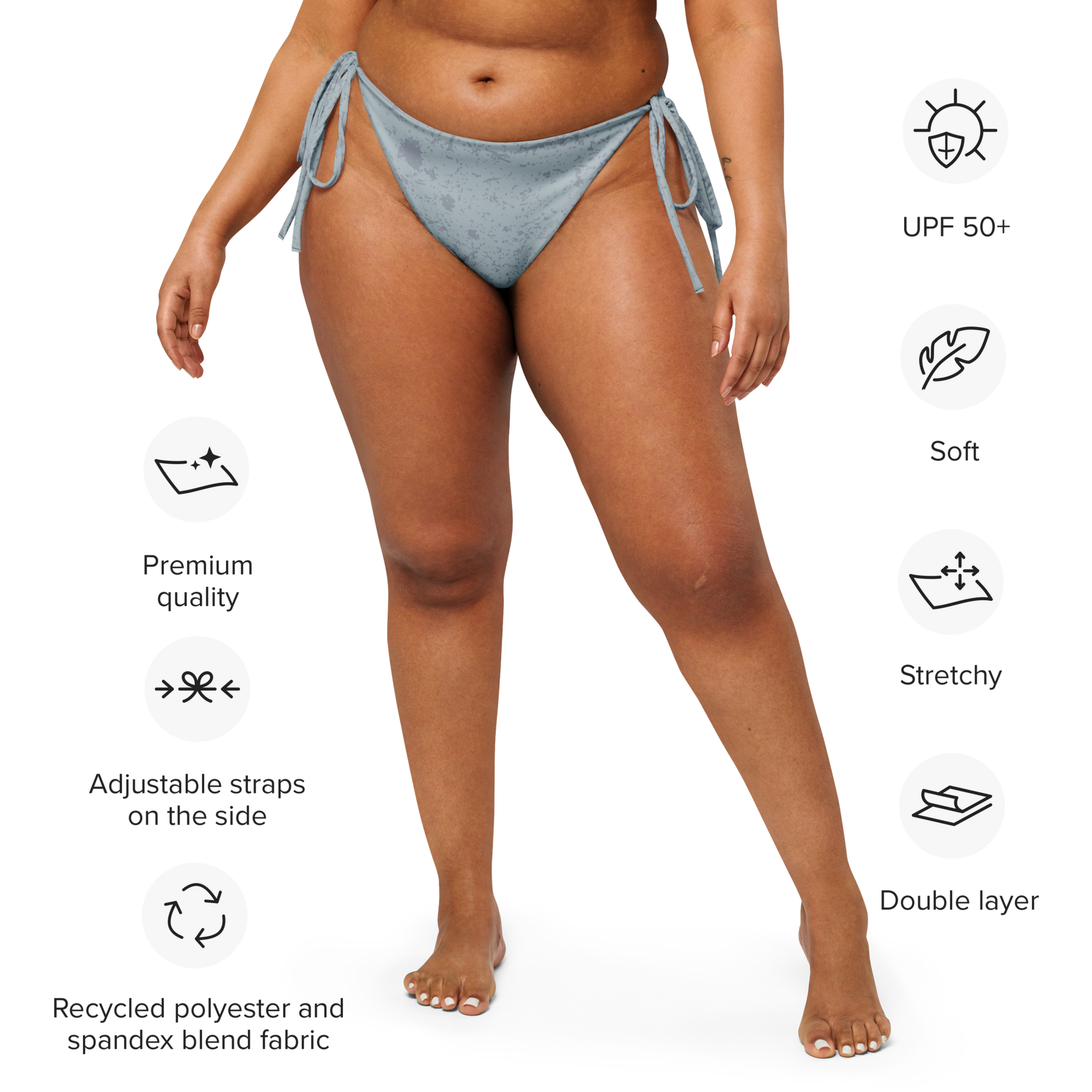 Did someone say sunbathing time? This summer, sit back and relax by the poolside wearing this versatile All-Over Print Recycled String Bikini Bottom. Enjoy the soft, stretchy recycled polyester piece with UPF 50+ and straps you can tighten for a better fit!